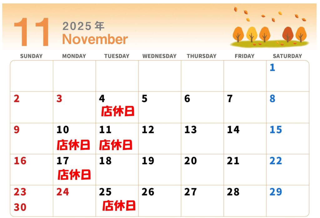 11月の店休日のお知らせ 2025.11.10 お知らせ 11月の店休日のお知らせです。 11月は4日・10日・11日・17日・25日となります。 祝日は休まず営業!皆様のお越しをお待ちしております。 たつみ名物盛り 前の記事 12月店休日のお知らせ 次の記事